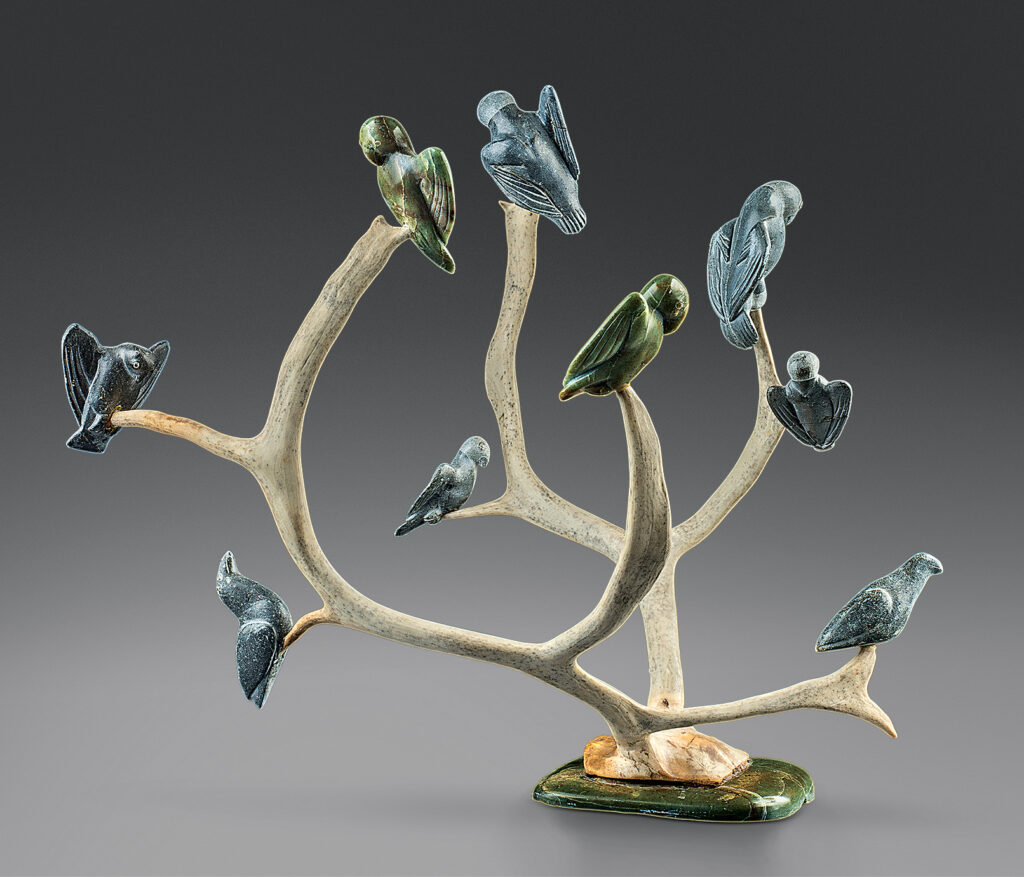 We’ve been working for the last three years on a new presentation of Inuit art, ᐆᒻᒪᖁᑎᒃ uummaqutik: essence of life. This permanent exhibition invites us to meditate on the rhythms of life that are particular to circumpolar territories…It brings together prints, textiles, glass, paintings and multimedia works. This exhibition has over 60 works spanning from 1949 to today. More than half of those works haven’t been exhibited in the museum before. Additionally, our exhibit ulitsuak | marée montante | rising tide features an outside projection by Glenn Gear, an Inuk artist. This is the first commission for the museum’s outdoor spaces by any Indigenous artist, and we’re proud of that investment directly [into] an artist’s practice.